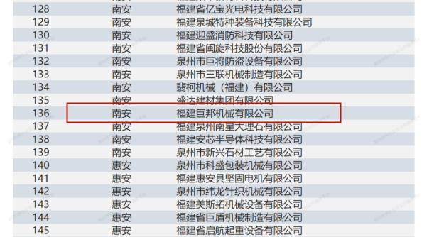 | 巨邦機(jī)械上榜福建省2022年第一批創(chuàng)新型中小企業(yè)名單 |
